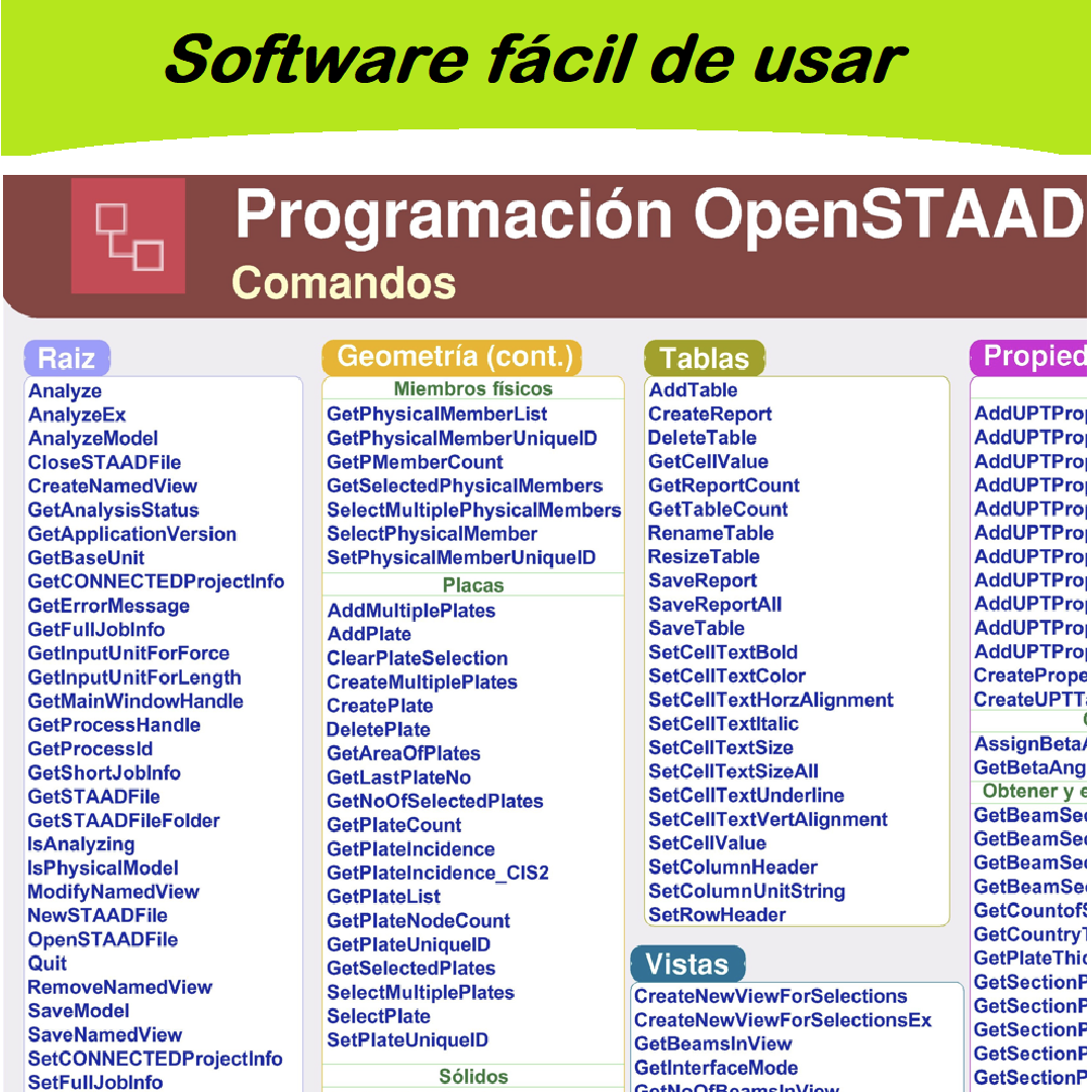 Una lista clara y visual con todos los comandos de OpenStaad., Lista y a la mano para impulsar tu productividad y personalización del StaadPro en cualquiera de sus versiones. Perfecta para arquitectos , ingenieros y estudiantes dedicados al diseño estructural.